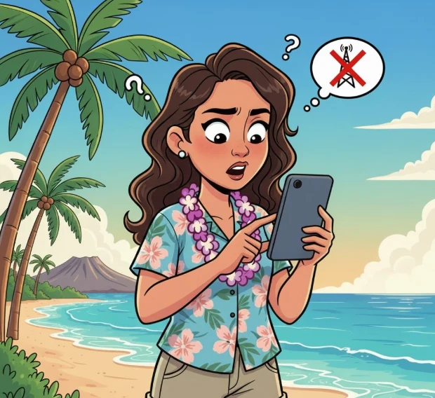 On the mainland, your phone may switch between towers seamlessly. On the Big Island, many areas are covered by a single tower—or none at all.